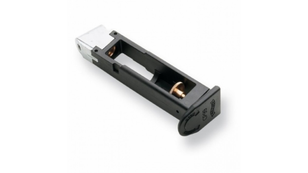 Запасной магазин СО2 для Walther CP99 служит для размещения источника энергии газа в газобаллонном пневматическом пистолете Umarex Walther CP 99 с нарезным стволом и барабаном-клипом для заряжания свинцовых пуль. В корпусе магазина Walther CP99 располагаются перепускной клапан, отсек для баллона СО2 и фиксатор баллона.
