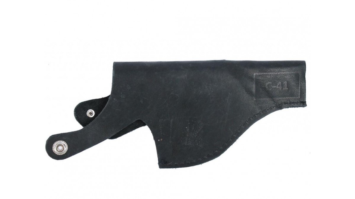 Кобура поясная C41 предназначена для ношения на пояском ремне газобаллонных пистолетов моделей Crosman C41, Borner C41, Umarex Walther P38 (пневматические копии германского пистолета Walther P.38 времен Второй Мировой войны). Кобура кожаная, открытого типа, цвет черный. Фиксация пистолета в кобуре осуществляется застежкой кнопочного типа.