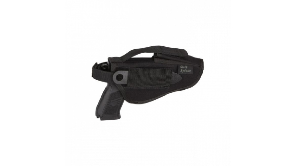 Кобура поясная черная для пистолетов M92, G17/18, STI, CZ, Steyr, BERSA, имеющих схожие габариты, предназначена для ношения оружия на поясном ремне. В кобуре имеется отделение для запасного магазина. Фиксация пистолета осуществляется ремешком с "липучкой".