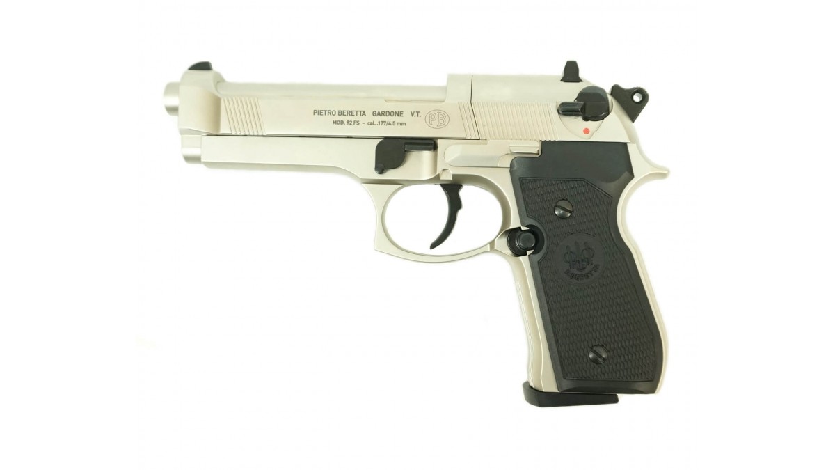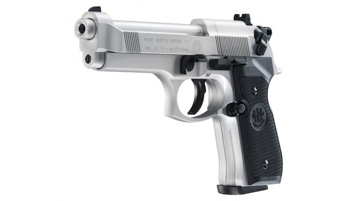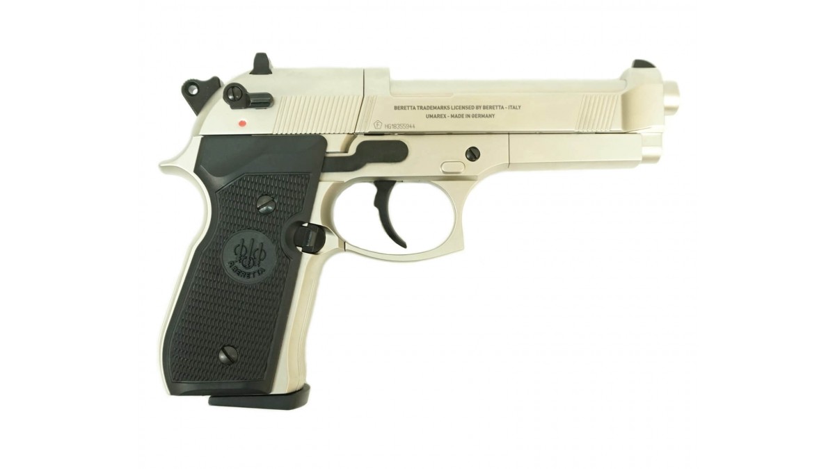 Пневматический пистолет Umarex Beretta M92 FS Никель с чёрными накладками 4,5 мм
