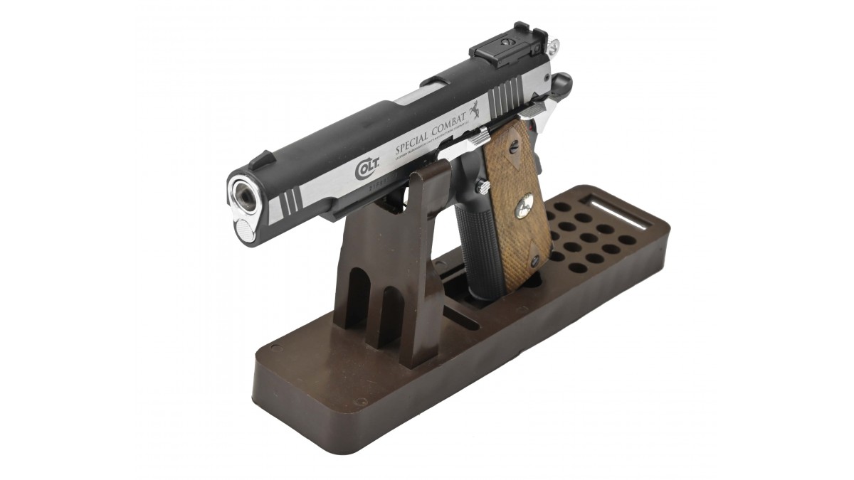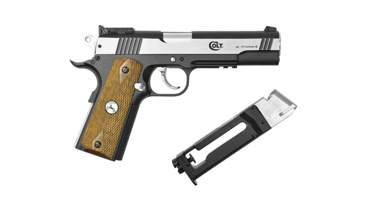 Представленный Colt пневматический стал собирательным образом модифицированного пистолета 1911-й модели. Дизайн оружия сочетает в себе актуальные эргономические решения и лоск элитного исполнения.