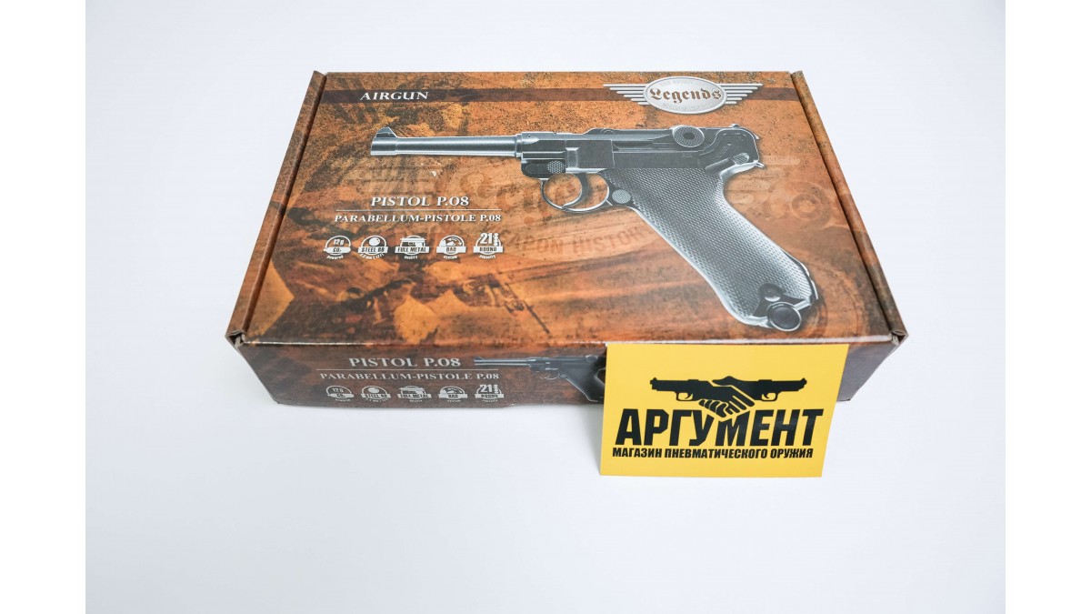 Пневматическая модель пистолета Umarex P.08 является копией огнестрельного пистолета Pistole Parabellum P.08, поступившего в 1908 на вооружение германской армии. Он был разработан еще в 1900 конструктором Георгом Люгером и для своего времени был передовой оружейной конструкцией, которую отличало важное достоинство - высокая точность стрельбы. Недостатком же оказалось очень трудоёмкое производство.