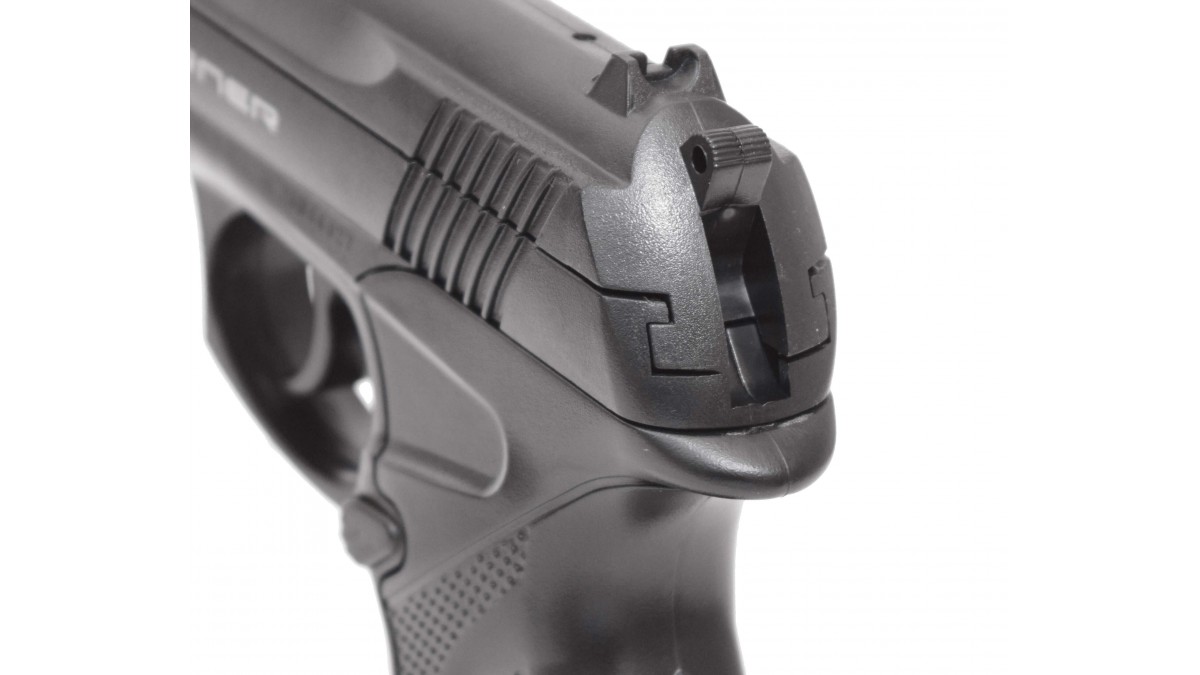 Несмотря на доступную цену пистолет изготовлен очень качественно. Его корпус выполнен из высокопрочного пластика, ствол – из стали, а магазин и рабочие узлы – из металлического сплава. На рукояти есть рельефная накладка, которая улучшает сцепление между рукой и оружием и снижает вероятность его выскальзывания. Благодаря небольшим подпальцевым выемкам на передней стороне рукояти держать пистолет очень удобно. Вес его составляет 500 гр. С таким весом и удобной рукоятью можно упражняться в стрельбе долгое время без дискомфорта, вызываемого усталостью руки.