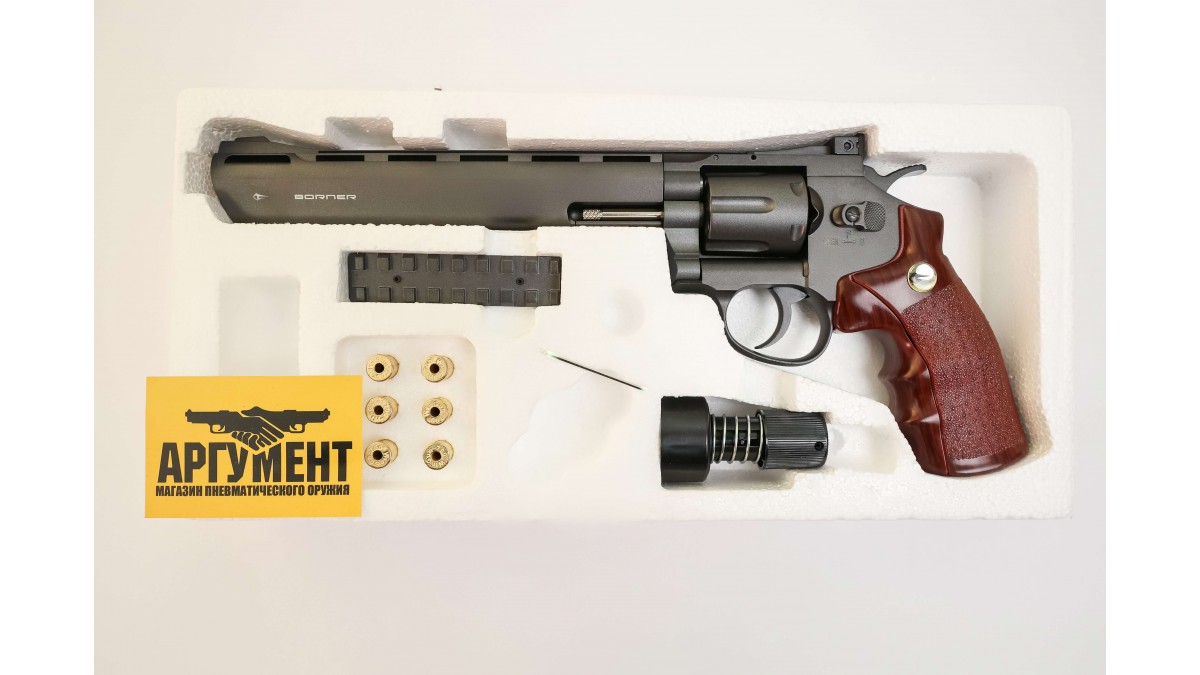 Пневматический пистолет Borner Super Sport 703 – револьвер с удлиненным, по сравнению с другими моделями серии, стволом.