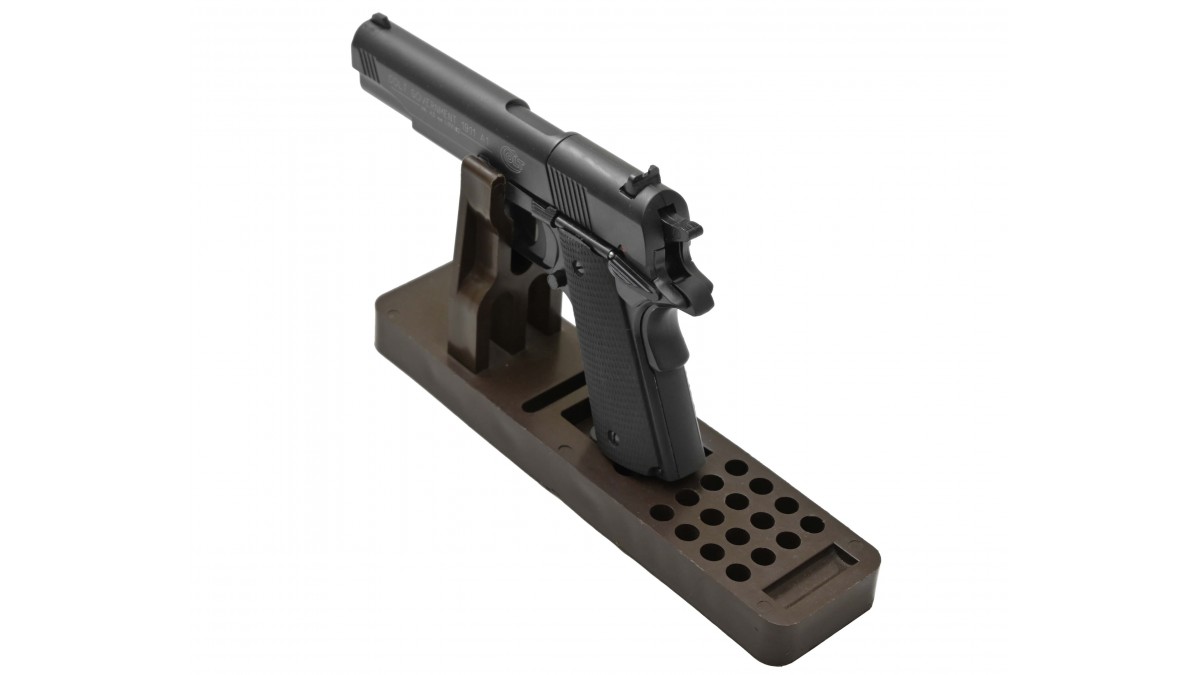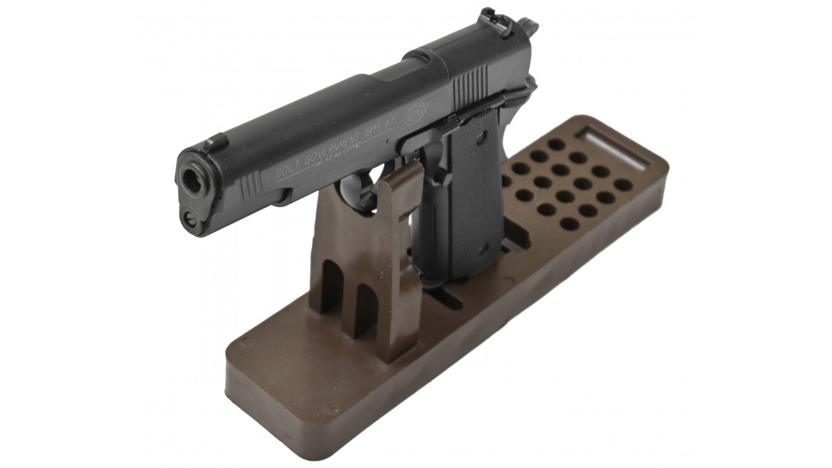 При внешней схожести с предком пистолет Umarex Colt Government 1911 A1 работает и управляется по другому принципу. Таким образом, пули заряжаются не в коробчатый магазин, а в клип-барабан на 8 отделений.