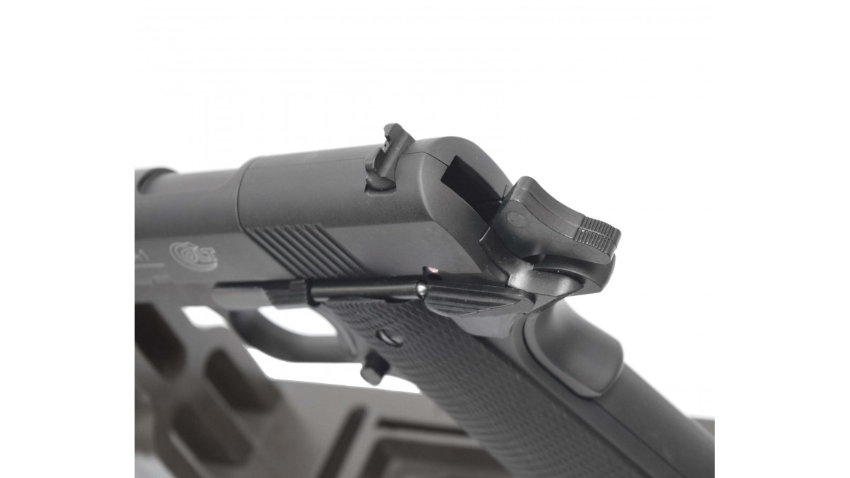 Пневматический пистолет Colt 1911 Umarex также перенял и оригинальные решения прототипа. В первую очередь, это два предохранителя.