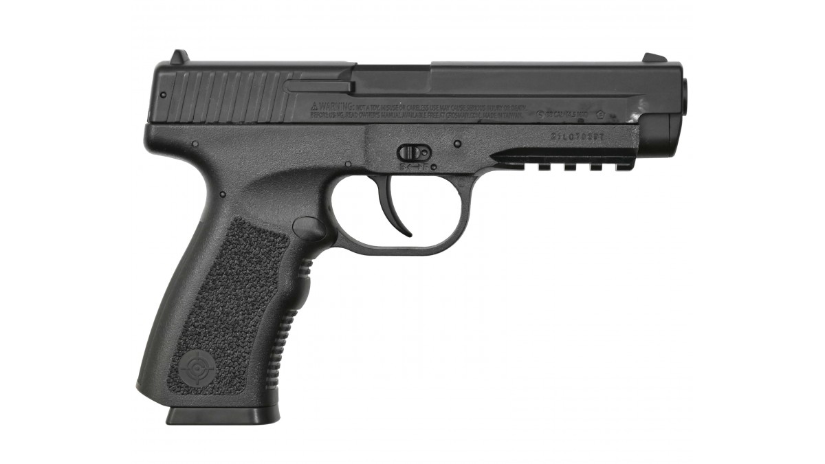 Пневматика пистолет Кросман предусматривает гладкую поверхность ствола, соответственно, применяются боеприпасы BB кал 4.5 миллиметра. В магазин пистолета помещается 20 сферических шариков. Для упрощения зарядки в корпусе предусмотрен паз отвода подавателя.