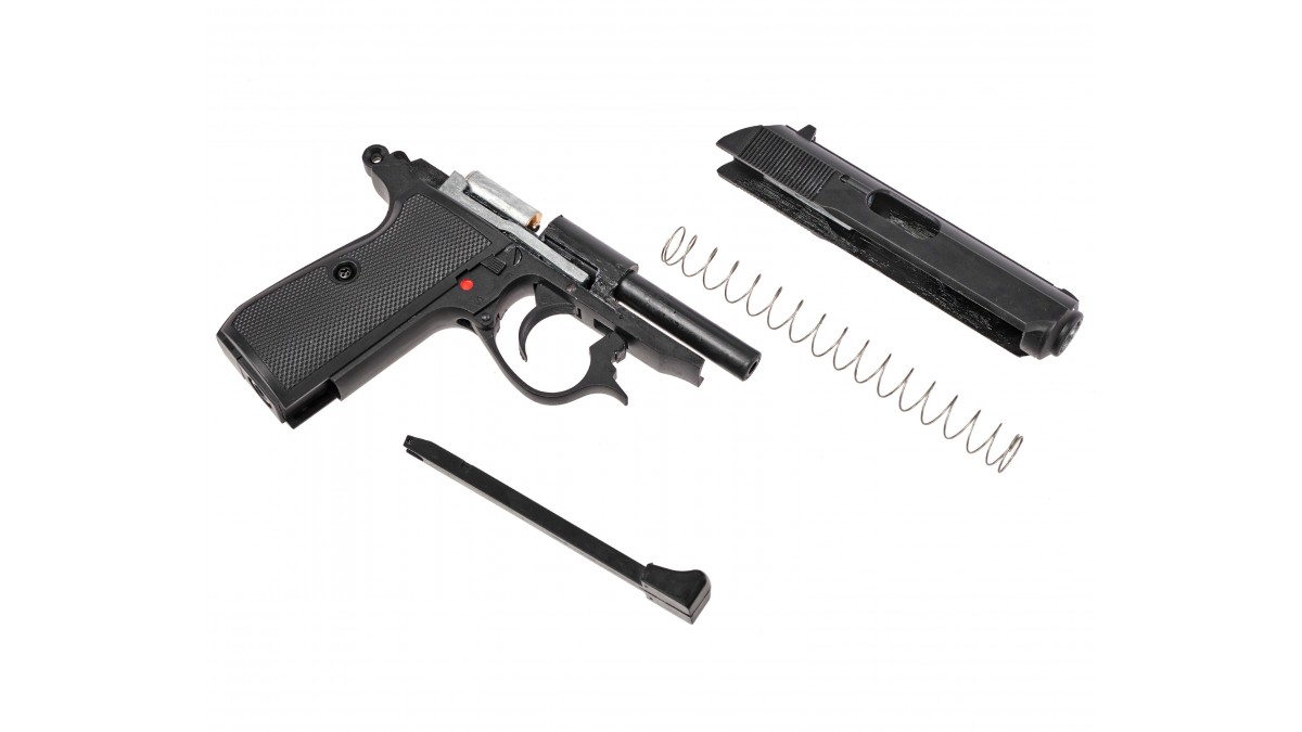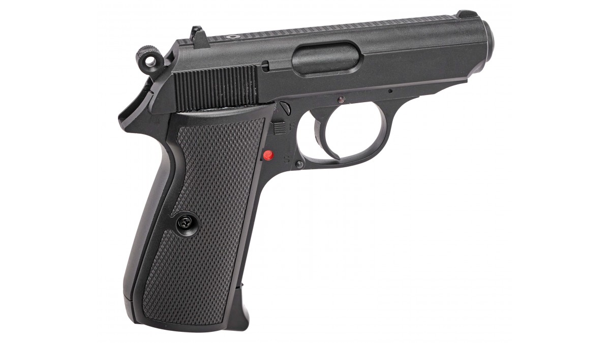 Пистолет воспроизводит дизайн немецкого Walther PPK/S с металлической рамой, кожухом-затвором и пластиковыми накладками рукояти. Вес модели — 560 г, длина — 15.5 см — соответствует габаритам огнестрельного прототипа. Текстурированная поверхность накладок предотвращает скольжение, обеспечивая надежный хват. Система Blowback имитирует отдачу: при выстреле затвор отходит назад, повышая реалистичность использования.