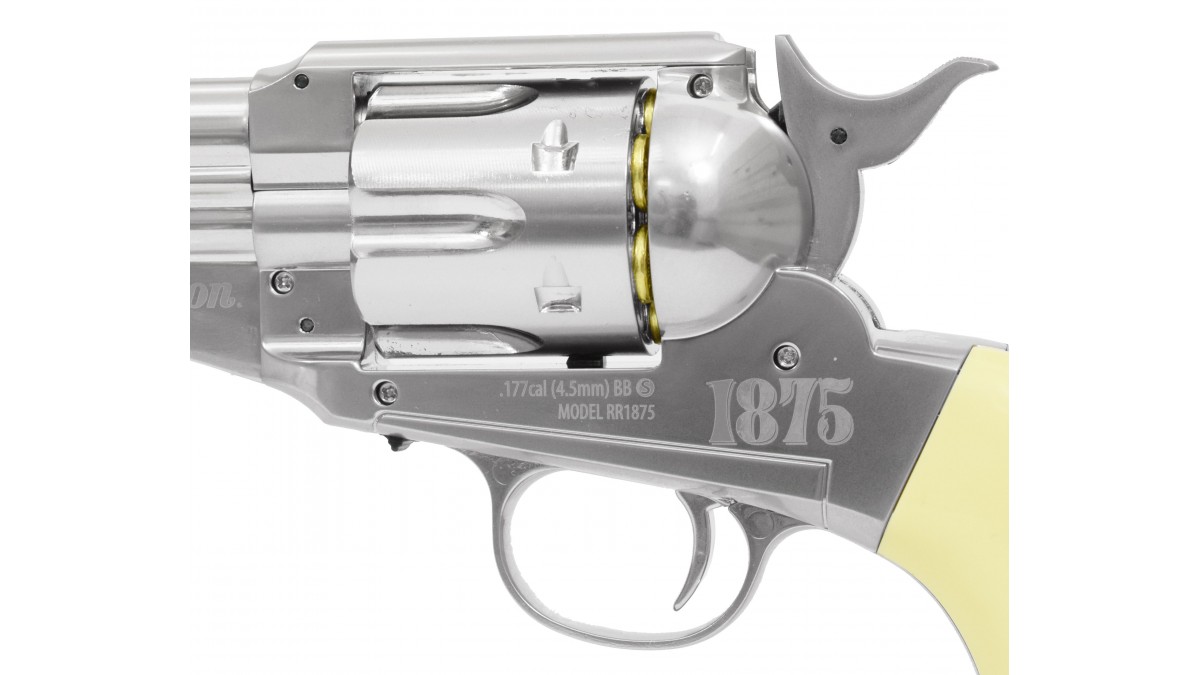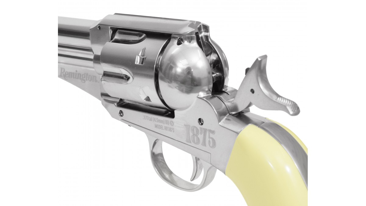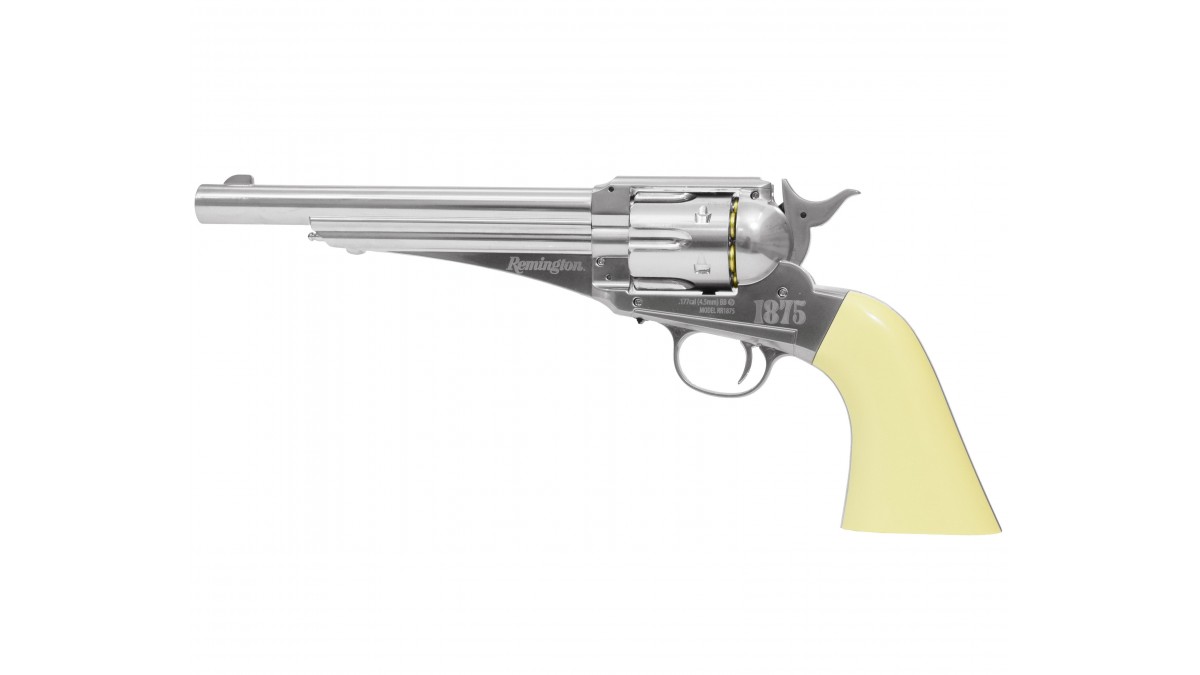 На протяжении двухсот лет Американская компания Ремингтон являлась лидером по созданию оружия, одним из первых образцов выпущенный и разработанный брендом стал револьвер Crosman Remington 1875. Именно его чаще всего используют, как реквизит в художественных и документальных фильмах про ковбоев Дикого Запада. Также это оружие по сей день пользуется популярностью среди гражданских лиц в целях охоты, самообороны и реконструкциях в таких странах, как США, Великобритания и Мексика. На примере огнестрельной модели была выпущена пневматическая версия от производителя Crosman, повторяющая оригинал до мельчайших деталей.