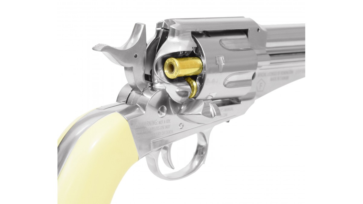 Газовый баллончик объемом в 12 грамм размещается в пистолетной рукояти оружия. Открытие защитной накладки резервуара происходит если потянуть за выемку с нижней стороны рукояти. Для плотного контакта механизма подачи и емкости, рекомендуется пользоваться специальными смазками, а в состоянии покоя револьвера требуется отсоединить баллон от конструкции для уменьшения износа уплотняющего элемента.