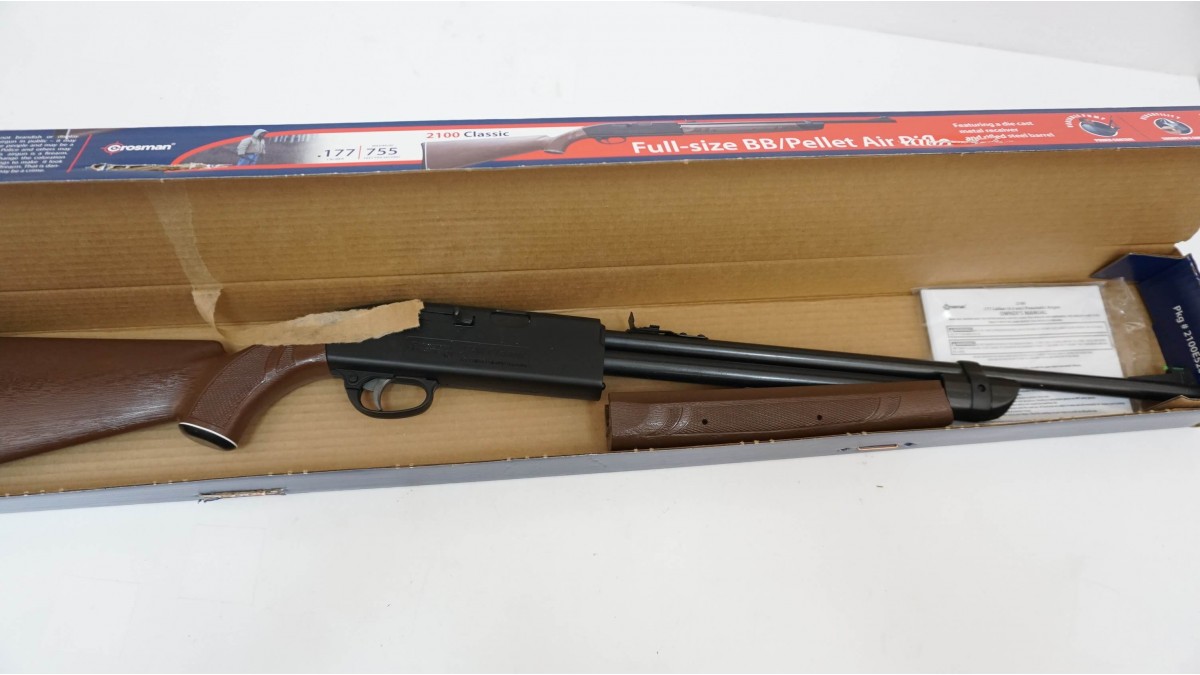 Пневматическая винтовка Crosman 2100 B позволяет стрелять свинцовыми пулями и омедненными шариками из стали обозначенного калибра. Число шариков для стрельбы составляет до 200 в магазине-бункере, размещённом прямо в рукоятке.