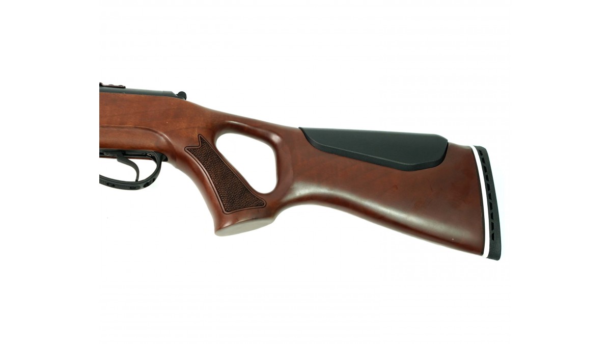 Пневматическая винтовка Хатсан 65 модели впитала в себя передовые системы модернизации компонентов. При этом оружие уложено в традиционную деревянную ложу из турецкого ореха. В детали отмечаются два эргономических улучшения.