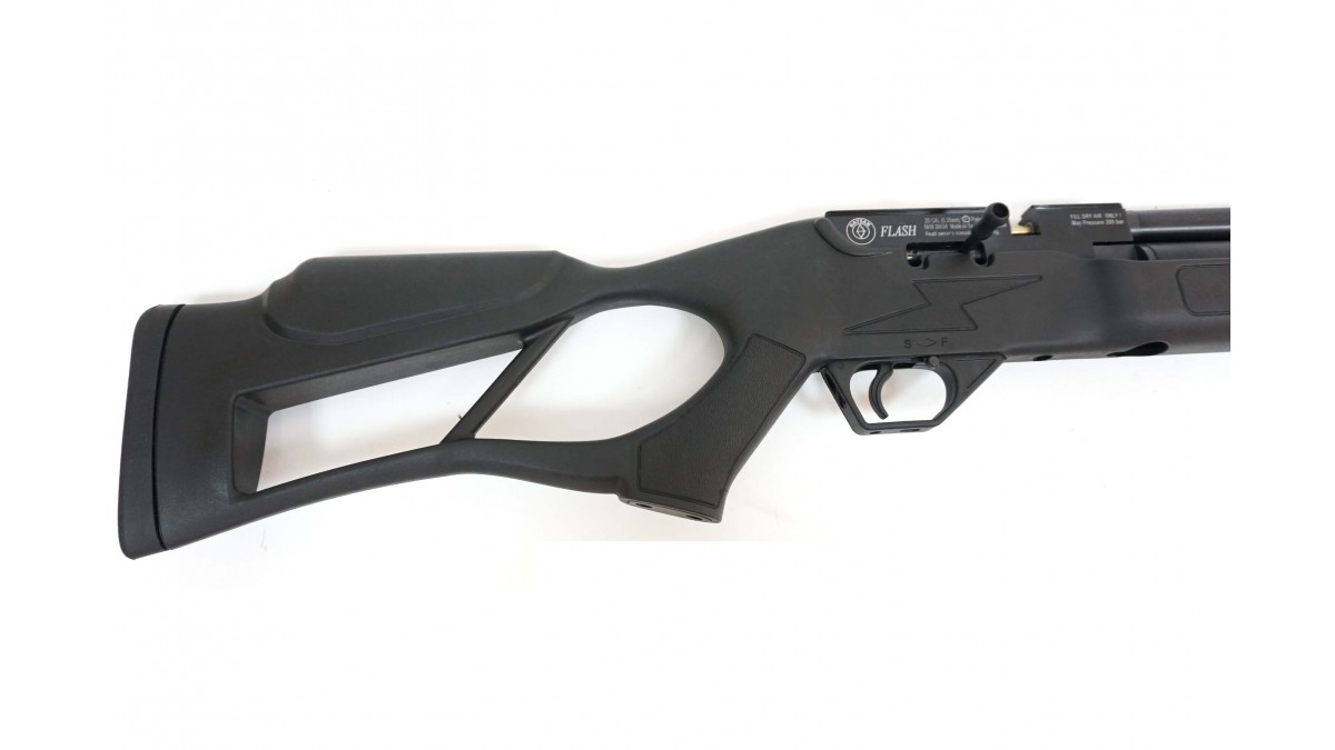 РСР винтовка Hatsan в качестве источника энергии для производства выстрела использует сжатый воздух, заключенный в специальный резервуар. QE в названии означает, что эта версия винтовки Хатсан Флэш 6,35 мм оснащена модератором, который снижает звук выстрела на 50%. Также в нашем магазине есть эта же винтовка в другом калибре - Hatsan FLASH QE 5,5 мм. Еще у нас можно купить Hatsan Flash 101 5,5 мм, у которого объем резервуара больше и достигает 210 см куб.