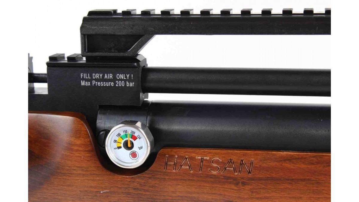 Источником энергии, обеспечивающим производство мощных и стабильных выстрелов, является сжатый в резервуаре воздух. Для контроля уровня давления винтовка Hatsan FLASHPUP оснащена встроенным манометром.