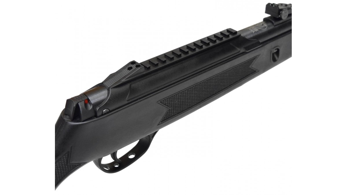 - рифленая поверхность цевья и ствола обеспечивает крепкое удержание винтовки во время стрельбы;