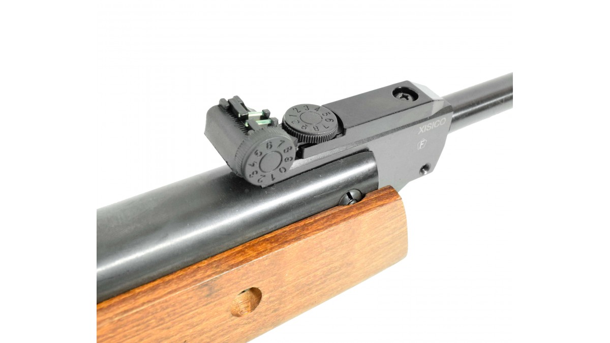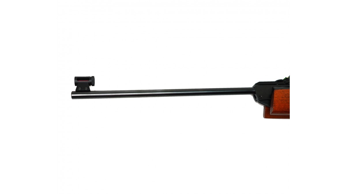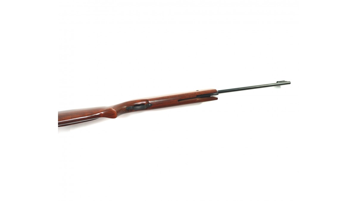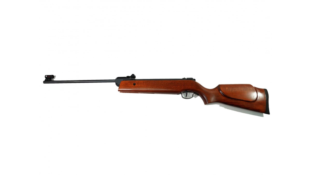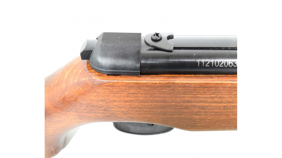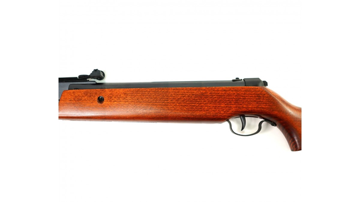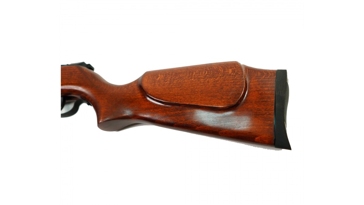 В качестве сырья для изготовления ложа выступает древесина твердых сортов, которая формирует привлекательный внешний вид классической винтовки, а также обеспечивает необходимую устойчивость к физическим нагрузкам. Применение такого типа материала позволило сохранить массу в пределе 2.8 килограмм при общем габарите изделия в 1010 миллиметров. При таких показателях пневматика отлично подойдет в качестве первого оружия для начинающего стрелка, который осваивает первичные навыки обращения.