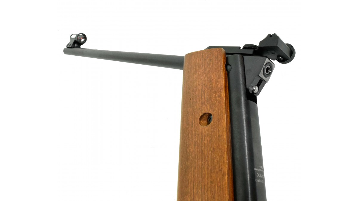 Рассматриваемое оружие в основе ствольной группы применяет нарезной бланк длиной 419 миллиметров. Такой элемент конструкции позволяет использовать в качестве боеприпаса свинцовые снаряды калибра 4.5 мм, которые по одной штуке устанавливаются в отсек пулеприемника для каждого выстрела.