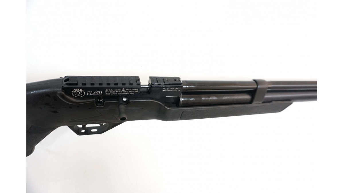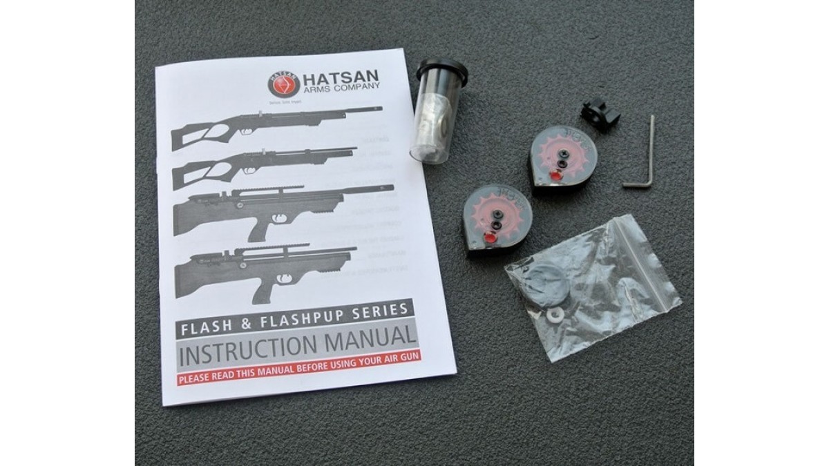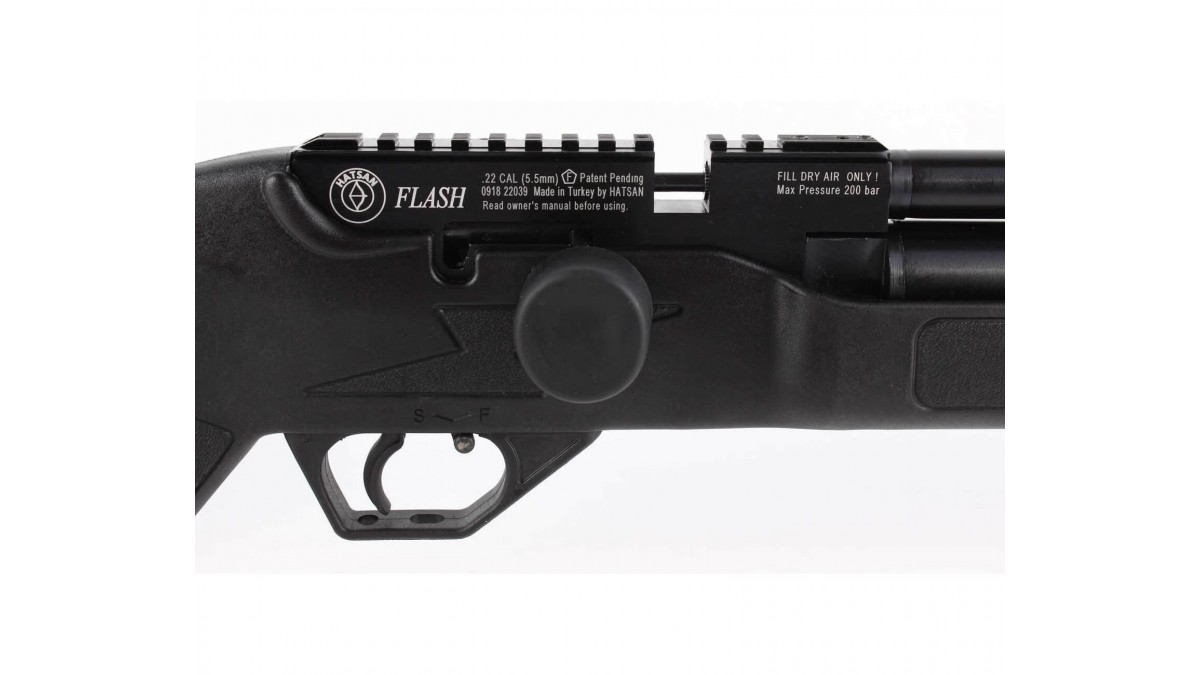 Для стрельбы из этой винтовки используются пули или шарики 5,5 мм для пневматики, они находятся в клип-барабане в количестве 12 единиц. Винтовка имеет регулируемый спусковой механизм, предохранитель оружия неавтоматического типа. Качественные характеристики каждого выстрела повышаются благодаря нарезному стволу. Hatsan Flash QE (PCP) под калибр 5,5 мм относится к многозарядным винтовкам, однако стреляет только одиночными, используется ручной боковой взвод.