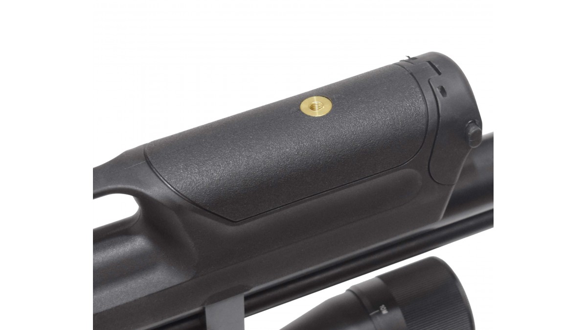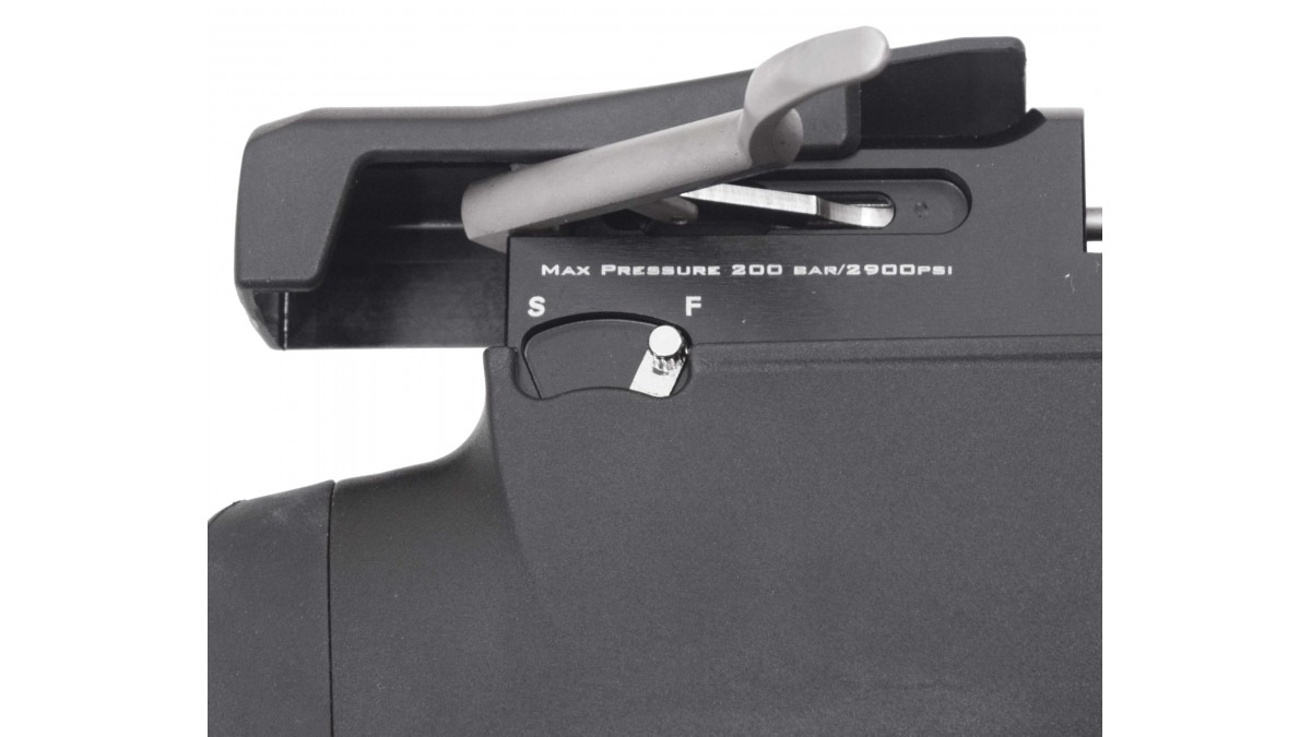 Стрельба из винтовки осуществляется благодаря сжатому воздуху, который находится внутри резервуара, рабочее давление которого равно 200 Бар. Для накачки ресивера, стрелку необходимо воспользоваться насосом или заправочной станцией, причем для контролирования давления внутри, модель оснащена манометром.