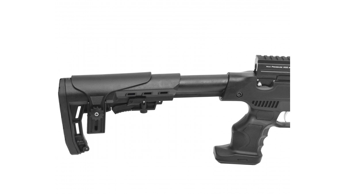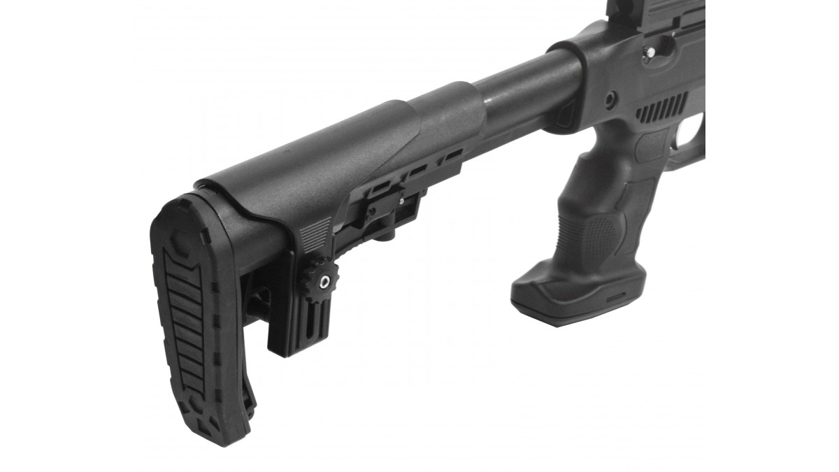 Прикладная часть съемная, а также телескопическая и снабжена регулируемым по высоте подщечником, что пригодится, если стрелок часто вынужден вкладываться в прицельные приспособления в габаритной экипировке и разных позициях. За комфортный хват отвечает пистолетная рукоять анатомической формы с прорезиненными вставками во избежание скольжения.