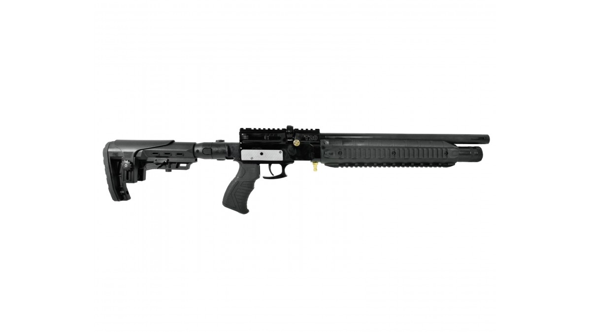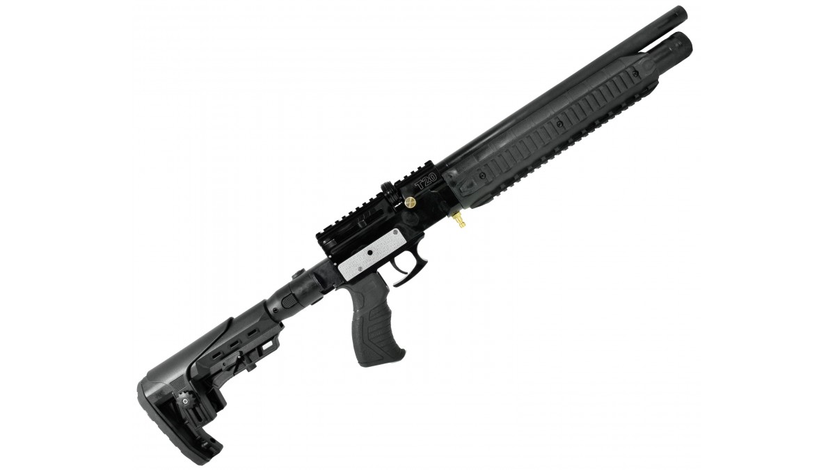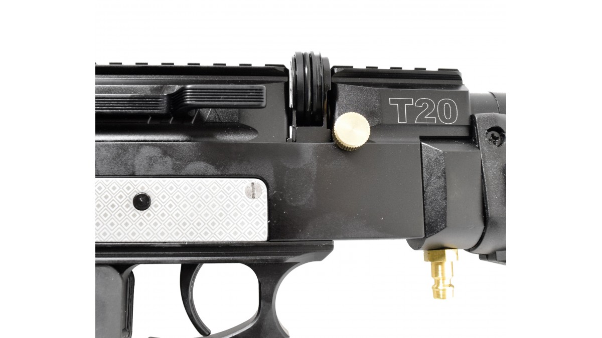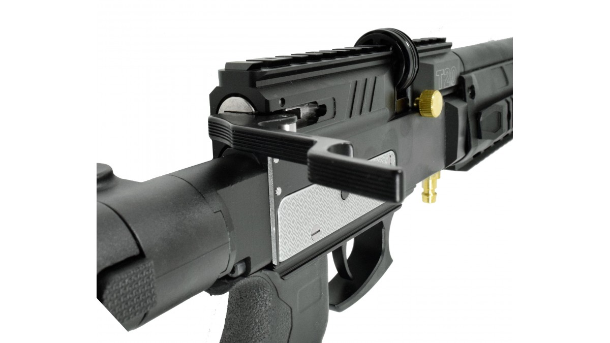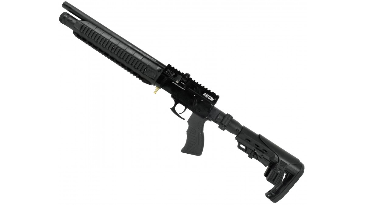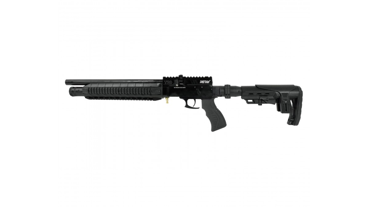 Винтовка Retay T20 – выполнена по принципу PCP пневматики, для разгона пули используется резервуар с газом, который содержится под давлением. При нажатии на спуск ударник бьёт по клапану и выпускает определенное количество сжатого воздуха в ствол, выстреливая пулю. Стоит отметить, что ПСП оружие обладает такими качествами как высокоточная стрельба и надёжность, которая повышается за счёт простоты механизма.