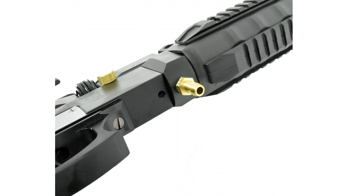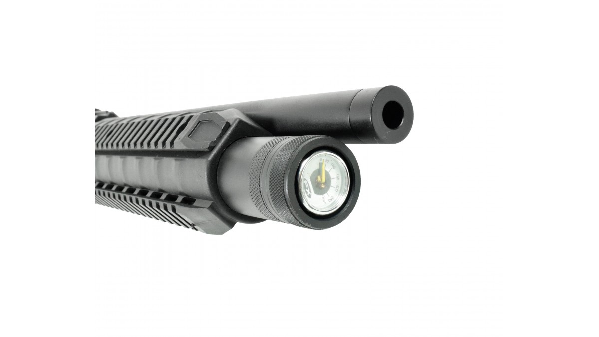 PCP винтовка Retay T20 оснащена нарезным стволом, длина которого составляет 415 миллиметров. Все внутренние механизмы, а также бланк ствола выполнены из стали. Оружие исполнено в калибре 5.5 мм и использует свинцовые воланчиковые снаряды для высоких показателей точности и кучности.