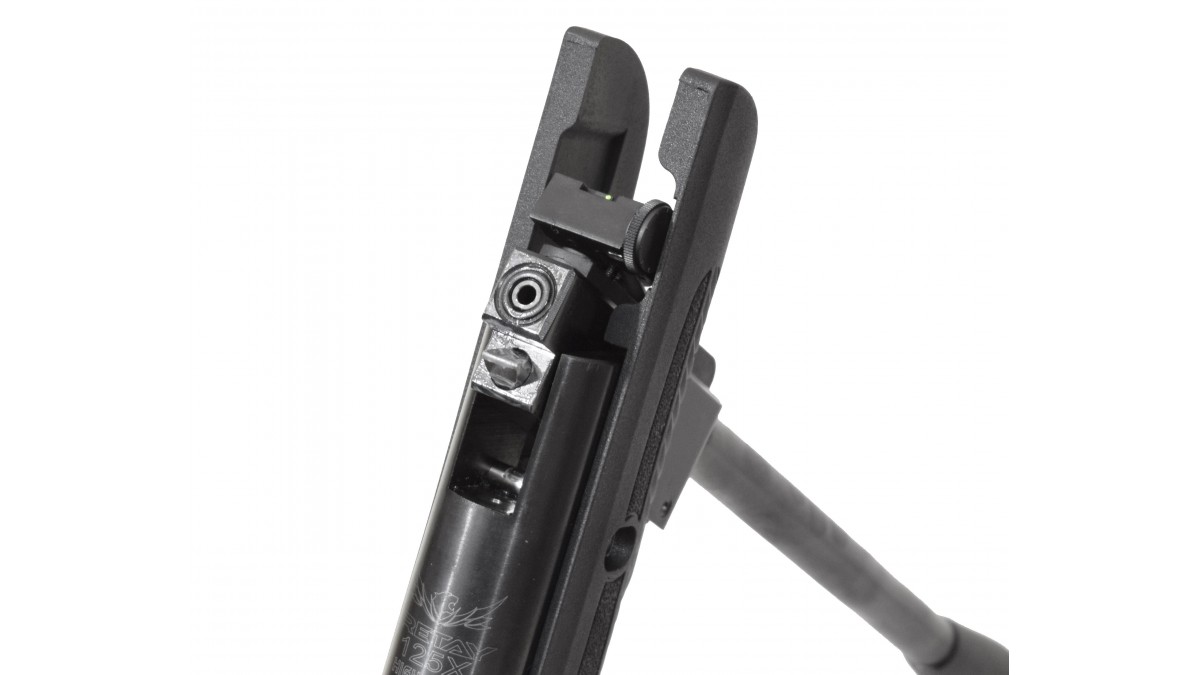 Над ствольной коробкой пневматической винтовки изготовитель разместил планку с креплением типа Weaver 22 миллиметра, которая используется владельцами для установки оптических прицелов, способных выдерживать отдачу пружинно-поршневой пневматики.