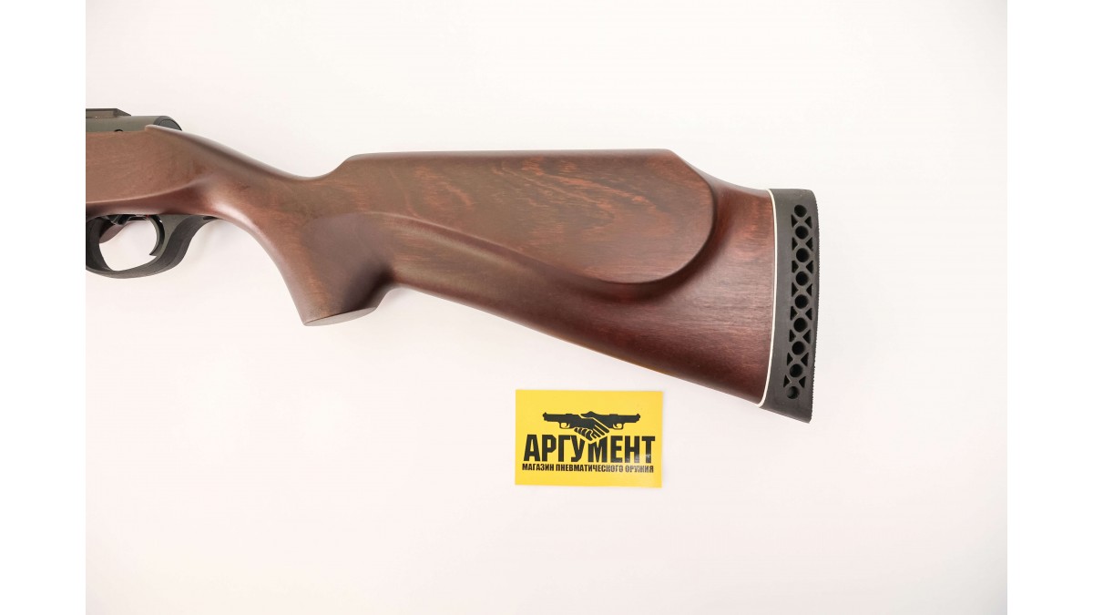 MP-512-R1 оснащена классической деревянной ложей, рассчитанной на разные возрастные группы потребителей. Ложа из березы позволяет комфортно удерживать изделие при стрельбе и взведении винтовки. А темное дерево делает винтовку внешне очень дорогой.