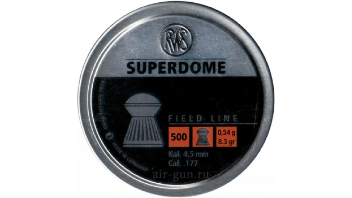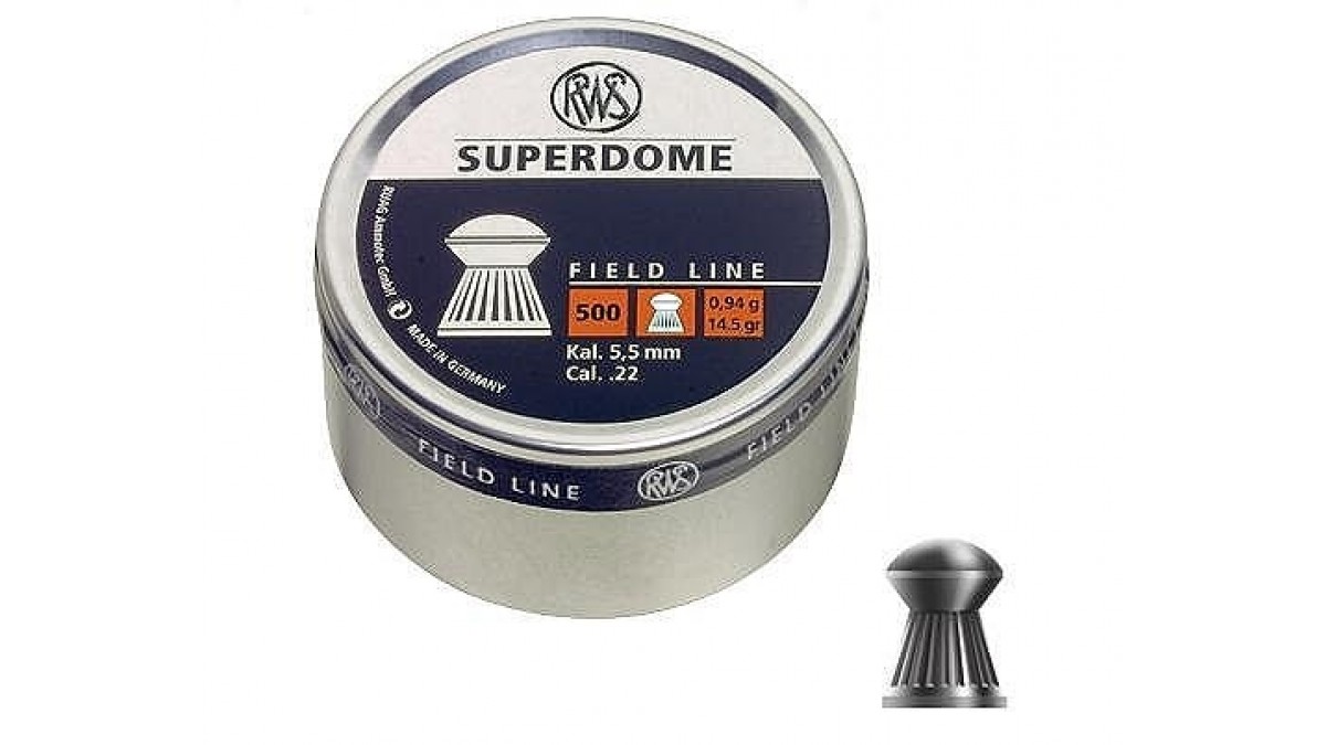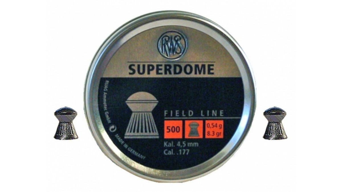 Пули свинцовые пневматические RWS SUPERDOME калибра 4,5 мм весом 0,54 грамма. Корпус рифлёный, с круглым наконечником. Контуры RWS SUPERDOME напоминают известные очертания английского бульдога. Конструктивные особенности обеспечивают высокую пробиваемость и проникающую способность пули RWS SUPERDOME. Подкупает высокой точностью поражения цели на больших расстояниях. Данная пуля пользуется популярностью при стрельбе на охоте как из пневматических винтовок пружинного действия, так и ружей, снабжённых пневмоцилиндром (баллоном).