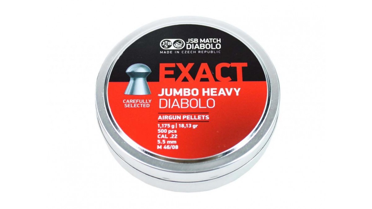 Купить пули JSB пневматики 5.5 JSB Diabolo Exact можно у нас. Пули JSB Diabolo Exact Jumbo для пневматического оружия калибра 5.5 мм (.22). Благодаря весу и форме, пули JSB 5 5 Diabolo Exact Heavy обладают высокой стабильностью полета, повышенной экспансивностью и большой пробивающей способностью. Пуля JSB Diabolo Jumbo Exact Heavy может использоваться для охоты, стрельбы по мишеням. Пуля JSB Diabolo Exact Jumbo – круглоголовая (domed) штампованная. Качество исполнения пули JSB Diabolo Exact Jumbo очень хорошее - практически отсутствуют облой и следы от пресс-формы. Упаковка JSB Exact Heavy Diabolo металлическая банка (500 штук). Пули JSB Exact Heavy 5.5 подарят незабываемую стрельбу. Диаметром пули JSB Exact Jumbo Heavy Diabolo 5,52 мм. Весят пули JSB Diabolo Exact Jumbo каждая - 1.18г. Материал JSB Exact Heavy Diabolo свинец. Производитель пули JSB Diabolo Exact Jumbo (г. Богумин, Чехия) Компания Джозефа Шульца JSB Match Diabolo (г. Богумин, Чехия) начала свою работу в 1991 году. Ее владелец, мистер Шульц, активно увлекается спортивной стрельбой и в настоящее время является тренером городского клуба по спортивной стрельбе. Большинство членов клуба, которых он спонсирует, представляют Чешскую Республику в разных международных соревнованиях по стрельбе. На протяжении нескольких лет Джозеф Шульц принимал активное участие в исследованиях в сфере производства пулек для пневматических винтовок. Он использовал свой опыт для создания нового оборудования по производству пулек JSB наивысшего качества для пневматических винтовок. Сегодня компания JSB MATCH Diabolo состоит из 20 работников, 5 из которых занимаются исключительно производством пулек, а остальные специалисты проверяют и тестируют каждую изготовленную пульку. Здание компании JSB MATCH Diabolo располагается непосредственно на полигоне. В связи с возросшим спросом на пули JSB, компания JSB MATCH Diabolo занимается увеличением производственных мощностей в 2 раза. После окончания работ по расширению производства компания сможет удовлетворить разнообразные требования покупателей относительно формы, размеров и веса пули для пневматического оружия. JSB Diabolo Jumbo Exact Heavy - идеально подойдет для вашего оружия.